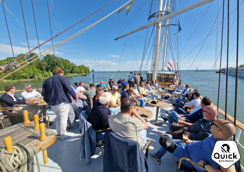In een volle bus vertrokken we met ruim 50 QB-leden naar de Bataviahaven in Lelystad. Daar gooiden we de trossen los voor een dag vol zon, ontspanning en verbinding. Aan boord genoten we van het mooie weer, inspirerende gesprekken en een smakelijke lunch in de kajuit.